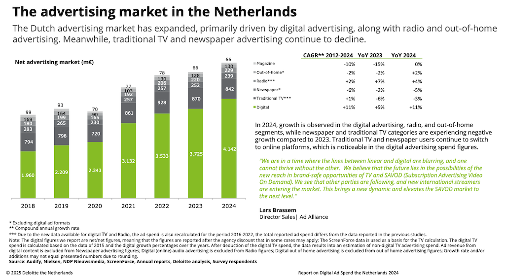 - Deloitte. (2025). Digital advertising spend in the Netherlands 2024.
